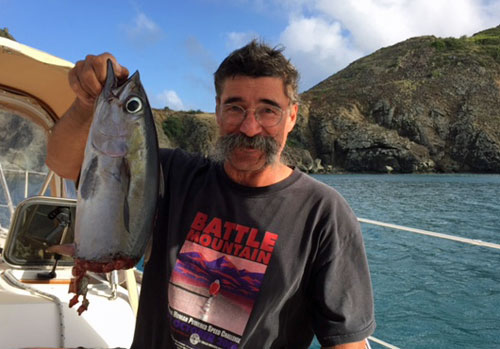 A Triple DisappointmentWhile in Sint Maarten we got chatting to the skipper of the boat alongside us, Mike, a Canadian singlehander on a Tartan 3700. We immediately hit it off and it wasn't long before we were trading fishy stories during Lagoonies 'happy hour'.He told me told me about a fish he'd caught on his trolling line as he approached Sint Maarten. A triple disappointment, he told me...