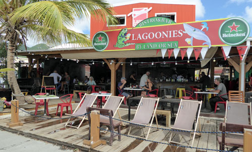 Sint MaartenSint Maarten has a Dutch side and a French side, where it's spelled St Martin.After clearing customs and immigration we motored under the lifting bridge into Simpson Bay Lagoon and tied up to a dock on the Dutch side, close to two large chandleries - Island Water World and Budget Marine. It was also conveniently close to Lagoonies, a popular cruisers bar.