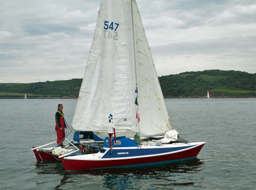 Rory McDougall's diminutive Cooking Fat (it's a spoonerism - think about it!) is a Wharram Tiki 21 catamaran. Rory's done a circumnavigation in this boat.